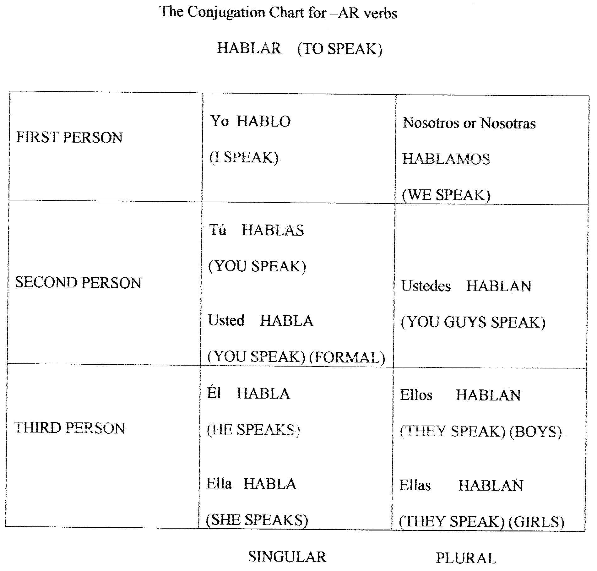 III. Mini-Lesson: a.) MLTP: Students will learn to use -AR verbs by analyzing a verb chart and by applying it to a short reading selection.