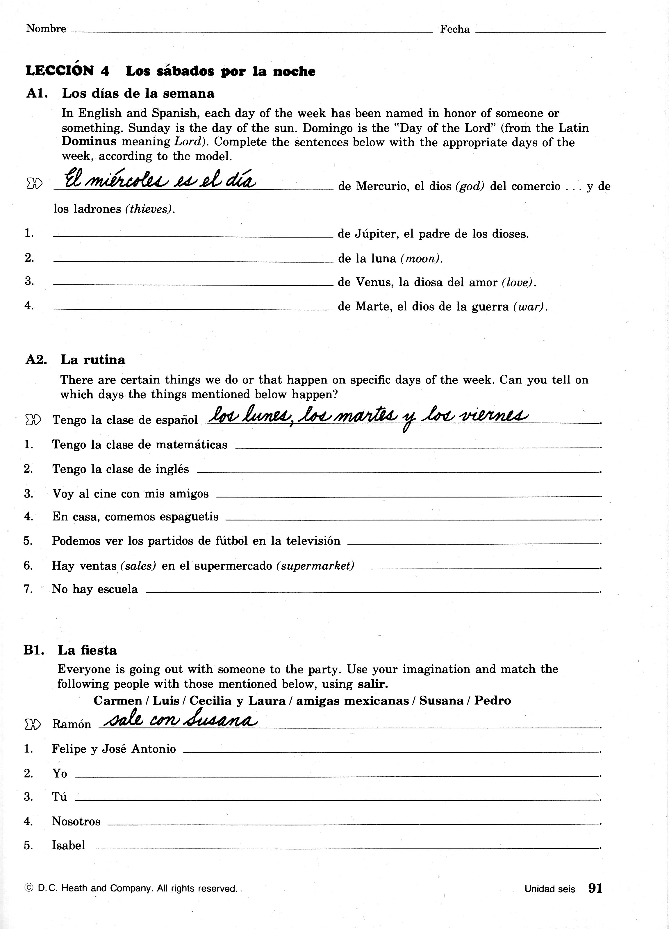 I. Warm-up: Review the vocabulary on page 82 and complete “Práctica Oral” on pp. 82 - 85. Write 3 examples in your notebook.