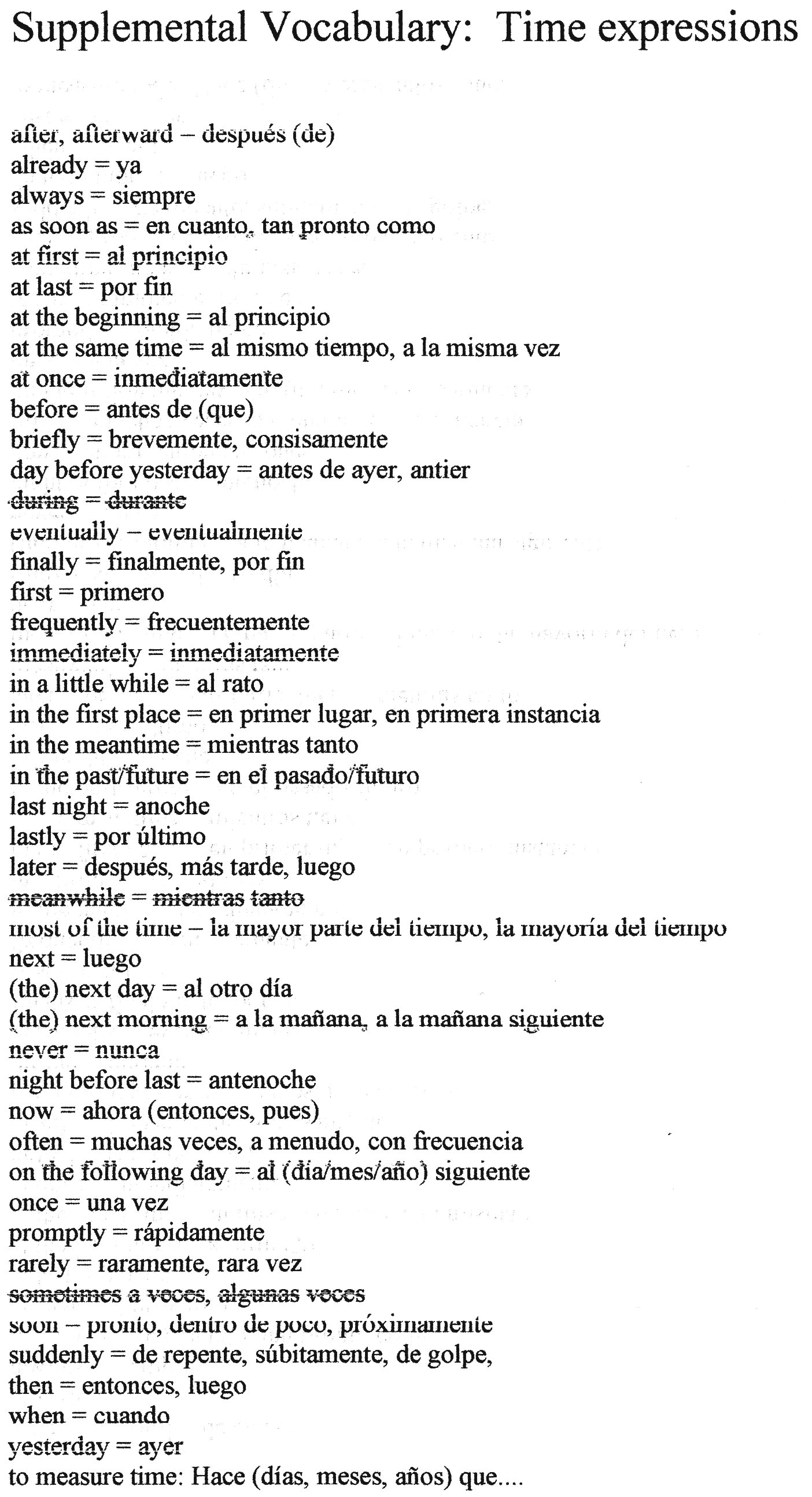 c.) Vocabulary: -Las Asignaturas; -Time Expressions