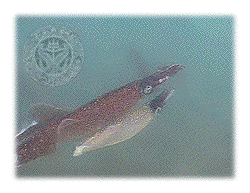 Squids Swimming Egg Capsuels (the size of an index finger and glued to plants and rocks) Jet Propulsion Illustration of Camouflage: (1) Ink shot out of funnel in the shape of a squid, (2) real squid changes color to blend in with water, (3) something in the ink numbs the smell of predator and (4) real squid jets away