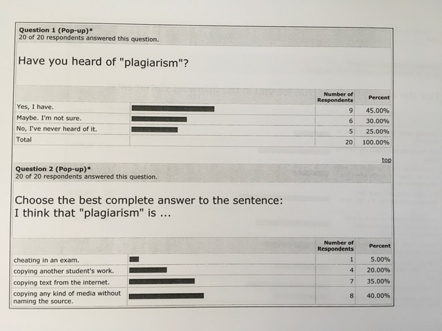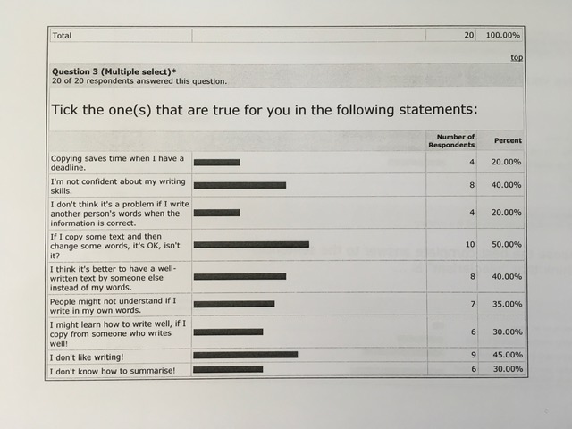 From this I wrote a summary (below) called "Plagiarism and You". I will give you two handouts to help you understand how to get information from the bar chart and make it into a paragraph.