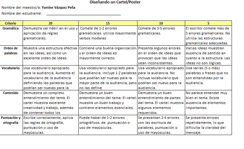 Secuencia Didáctica Presentación 1. Reproduce el siguiente video llamado “Valores universales” el cual da una explicación breve de qué son los valores y menciona algunos ejemplos de ellos. Pon mucha atención en el video pues al finalizar responderás el ejercicio #1 “Crucigrama”. 2. Realiza la actividad #2 "¿Qué son los valores?" en la cual revisarás mediante una breve lectura la definición de valores. Al finalizar, responderás una serie de preguntas relacionadas con el tema. 3. Da click en la actividad #3 "Flashcards valores" para revisar el nuevo vocabulario relacionado con el tema “La importancia de los valores en la vida cotidiana”, apóyate de las imágenes mostradas y así como de los conceptos para interpretar el significado de cada valor. 4. Realiza el ejercicio #4 "Formando palabras", en el cual tendrás la oportunidad de practicar con el nuevo vocabulario revisado. Deberás formar la palabra (valor) correcto, organizando cada una de las letras sugeridas. Práctica 5. Con el fin de poner a prueba tu conocimiento acerca de los valores, realizarás el siguiente ejercicio #5 “Jeopardy” en el cual revisaremos ejemplos de situaciones reales donde distintos valores son aplicados. Lee cuidadosamente cada ejemplo y asegúrate de analizar cada situación. 6. Ahora es tiempo de discutir acerca de dilemas morales. Un dilema moral se refiere al varo de la honestidad. En parejas, leerán cuidadosamente la situación descrita y con base en su punto de vista responderán las preguntas señaladas en el ejercicio #6 “Dilema moral”. Producción 7. Diseña un cartel en el cual promuevas los valores universales de manera creativa. Puedes utilizar algunos de los siguientes programas, en los cuales podrás añadir imágenes, palabras clave, etc. *Canva: https://www.canva.com/es_mx/crear/posters/ *Designer: https://desygner.com/es/ El cartel deberá cumplir con las siguientes características: • Puntuación y ortografía • Gramática • Contenido • Vocabulario • Orden de palabras
