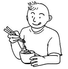 ロバーツさんも、少しずつ食べてください。なっとうチャーハンは、あんまりにおいがしないから、なっとうがきらいな人も食べやすいそうですよ。 |