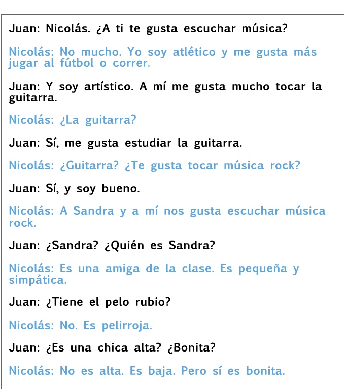 Read the coversation between two friends. Then answer the following questions in complete sentences.