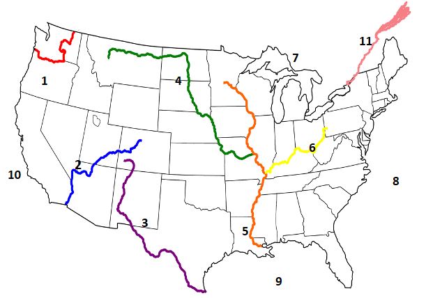 Match the number with the correct bodies of water