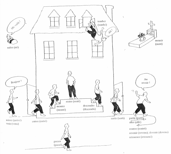 REMEMBER: These are verbs of motion that get you to or from the house. CLIQUEZ ICI pour voir la MAISON d'ÊTRE