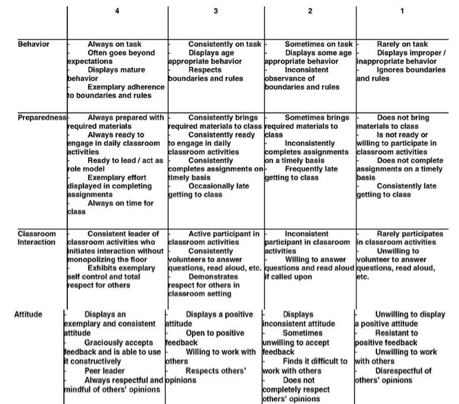 Read the rubric choices below and then rate yourself for the categories. If you score yourself above a 2 for any category explain your score in the second question box.