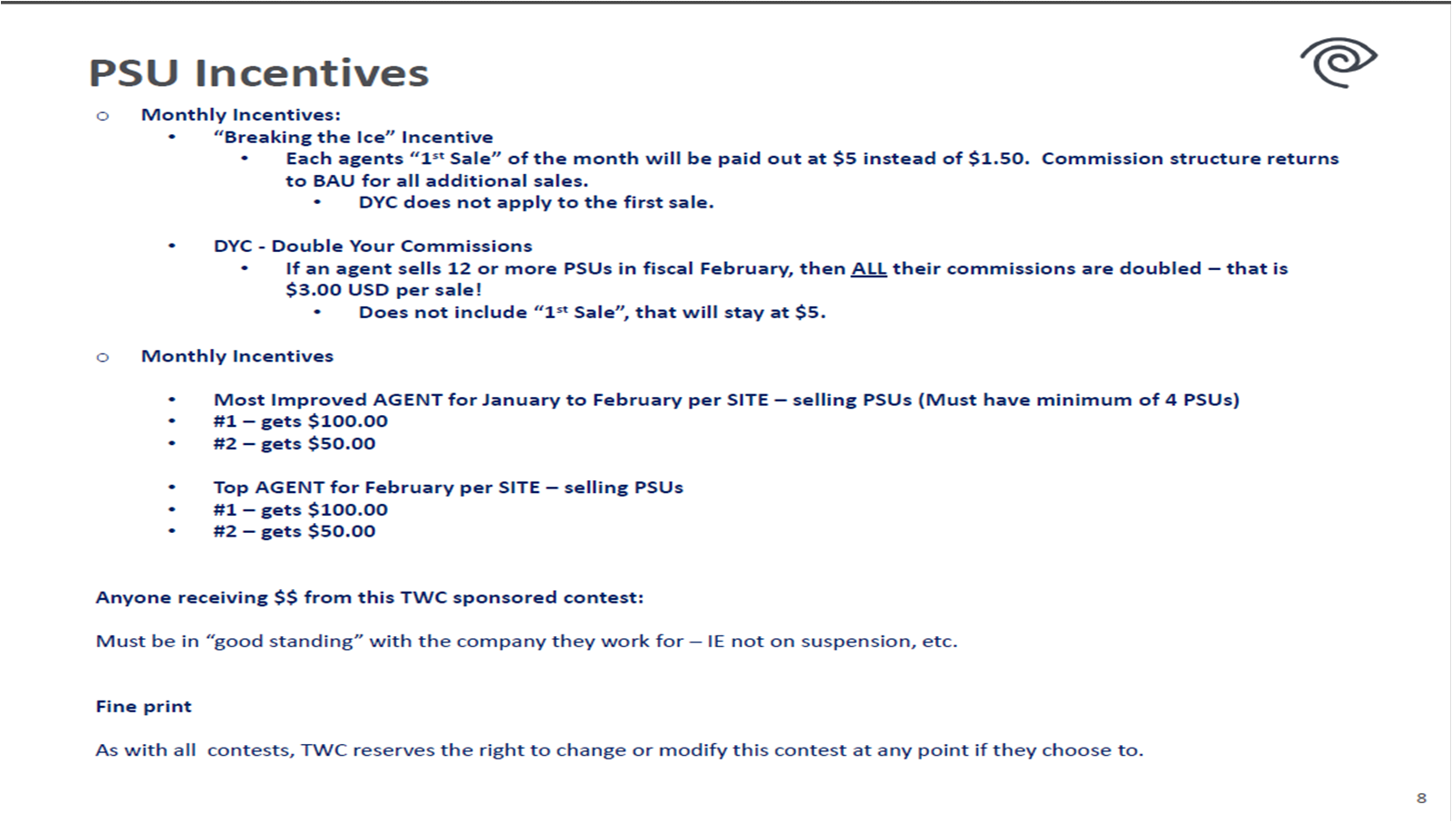 TWC Midwest Agent Goals and Incentives March Fiscal