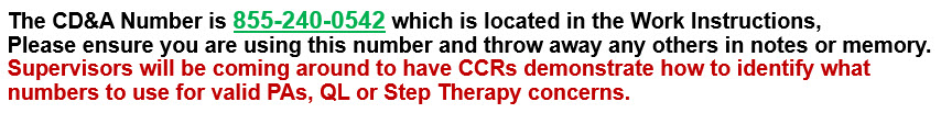 Please provide you information and review the information related to the ONLY number to be used for calling the CVS CD&A Department (always check the CIF to validate if CVS handles the CD, and if client does, transfer to their appropriate number).