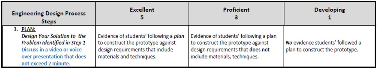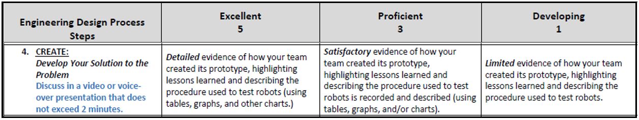 Please use this online rubric to rate each robotic team’s overall understanding of the five-step Engineering Design Process. Be sure to enter the team name and choose the school from the list. Feedback given in response to the last question will be shared with teams. Thank you for helping prejudge student efforts that will be showcased on June 6th at the STEM Trifecta!